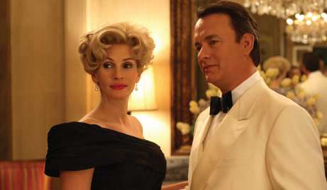 GOLDBLATT: The resolution of film gives you a lot of freedom to manipulate images in DI. We had a scene where a last-minute decision was made to change a costume that Tom (Hanks) was wearing from a traditional black dinner jacket to a white silk dinner jacket. Julia (Roberts) was wearing a black dress in that scene. We had a very, almost impossibly, broad range of colors and textures in those shots. We shot this scene with them walking up a staircase with a narrow landing. I knew that we would have the flexibility to adjust the contrast of the jacket in the DI. I could say, ‘Steve, try this and let me see what it looks like.’