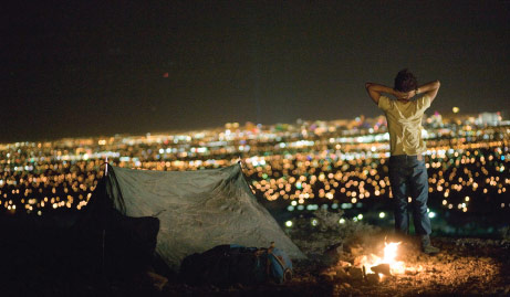 Likewise for a key location later in the film called “Slab City,” a real-life enclave near California’s Salton Sea, where residents use campfire and small generators for light. “We did a lot of handheld, improvisation with the real people who lived there,” Gautier explains. “I used 500-watt practicals and fluorescents just to fill in the background and allow Sean total freedom with the camera. During the day, Slab City was very hot and dry, with the sunlight bouncing off the concrete, so I overexposed a lot to capture that sensation.” The DP says this decide-at-the-last-minute approach meant mostly lighting scenes through the lens. “The slightest change in direction, toward or away from a cloud or sunlight, would alter everything, so we couldn’t build large lighting schemes that would be too difficult to move or change,” he notes.