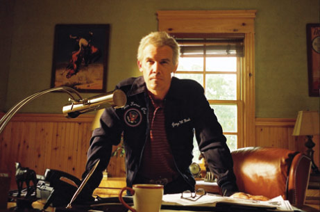 That sentiment is an apt description for some of W.’s extreme shallow-focus shots, where only one area is in sharp focus to convey a distorted perspective. The visual was achieved with the Lensbabies system, pioneered for still camera use and converted to film via Panavision-made adapters. Papamichael characterizes Lensbabies as a technical variant of the Arri lens used by Janusz Kaminski on The Diving Bell and the Butterfly, which allowed for manipulation of the focal plane. “But while this is like a swing and tilt,” he notes, “you don’t rotate it into position. You can pull to one side to get a particular plane into focus. The operator is the only one who can see what is happening focus-wise.” The technique was used for a number of subjective shots as well as close-ups. It was applied for W.’s POV when he was drunk, and later when he is trying to listen to preachers, suggesting his drifting perception and limited awareness. To emphasize moments when Bush is overwhelmed or confused, close-ups were used, focusing only on his mouth or one eye.