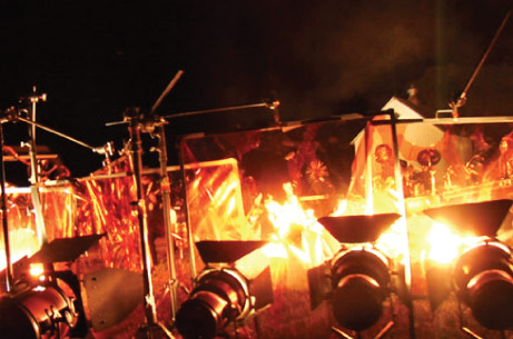 In terms of lighting, shooting at 1000 fps presented its own challenge. The band and the giant masks had to be lit at a high foot candle level for exposure, and Presant knew it would be difficult to find any large units in the area. “In Iowa there are no 20Ks and the number of 10Ks that even exist I can count on one hand,” he relates. “The other issue you have at 1000 frames per second is that small filament lights show decay from the AC cycle – so you’ll get flicker out of tungsten. We had to go with 2K lights or higher.”