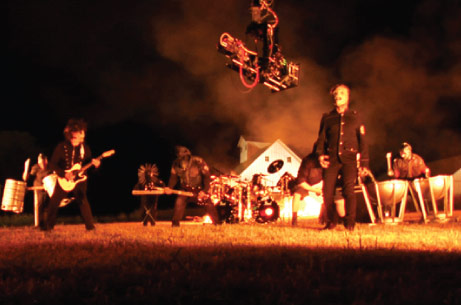 Psychosocial is a scary, and surprising song – abruptly shifting from intense white noise to a beautiful, lilting melody. Like the band’s performance, shooting in two formats, at night, at a distant location in Iowa, presented its own surprises. Foremost was finding a talented crew and the proper equipment to do the job. Budgetary limitations meant Presant could only bring along his 1st AC, Peter Lee, and that most of the camera and lighting equipment had to be procured locally. Presant was quick to tap his friend and mentor Steven Poster ASC, to help secure a strong local crew. “Every time I go to a new city, I call Steven (Poster) and, invariably, he knows someone from that town. If he doesn’t, than he knows somebody who knows somebody, so I’m always getting great recommendations,” said Presant. This system of referrals brought him Minneapolis-based gaffer Dave Palm, who Presant called “fantastic.”