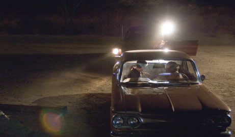 A case in point was the film’s first deadly attack, on Darlene Ferrin and Michael Mageau in a Vallejo park, shortly after midnight on the fourth of July. Ferrin died on the way to the hospital. But Mageau survived the shootings, later identifying the man Robert Graysmith becomes convinced was the true Zodiac killer. “Once we had scouted the location and knew how the scene was going to develop,” Savides describes, “with the boy and girl parked in the car, and the killer driving in toward them, I asked for a single lamp post that would help motivate the lighting. It’s dark, it’s late, and the spot is known as a place for kids to go make out, so there wasn’t any need to push the motivation beyond what existed. We did have to bring the light down when we did some of the closer shots on the girl in the car. But otherwise it was mostly just using open-faced fixtures, like blondes and redheads with 1/4 CTO that was enough to do the trick.” Savides says his minimal use of instruments, for a scene in Arthur Leigh Allen’s trailer, he lit through the windows using HMIs bounced into gryflon as skylight, and smaller HMI units, which were used as a hard, directional light, would occasionally raise eyebrows with the Viper’s imaging technicians. “But I just kept doing what came naturally until I got called into the principal’s office,” he laughs. (One point of note: Fincher wanted to extend the emotional time of the Blue Rock Springs murder scene with high-speed VFX. Digital high speed without compression was not yet available, so Savides tested the VFX with both the Viper and 35mm, taking the two formats through the pipeline and getting a 98% match. The VFX took up 10 seconds of screen time, and was ultimately shot by Savides on Kodak 5229. Mavromates delivered negative to Digital Domain, which sent back DPX files that dropped in seamlessly to the tapeless post flow.)
