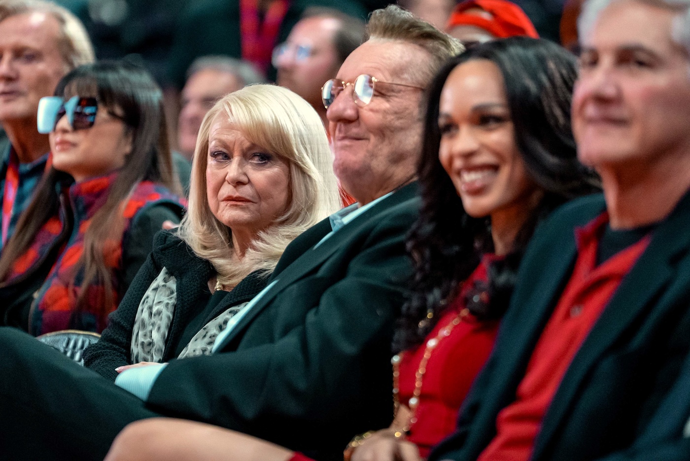 The Guild camera team tested vintage and modern anamorphic and spherical lenses. As Fortner adds: “Since Kevin wanted a 16-by-9 image that would fill the screen, Jonathan suggested using the Hawk Anamorphic 1.3× at full frame, and it was quickly apparent this was the way to go. The Hawk 1.3’s have all the perks of anamorphic – barrel distortion, flares, elliptical bokeh – but they also have an extended depth of field so they don’t scream ‘anamorphic.’ They feel more like vintage spherical lenses. We also used some anamorphic zooms, as I love using a slow servo zoom or pan to find a moment in a scene – like in episode six when Donald is testifying in court [and talking about how the NBA has ‘mesmerized’ Shelly into selling the team to get the league off the hook]. John Seale [ASC, ACS] was a master of using zooms – and blocking – to create a wide shot that comes into an over and oner. That stuff is super fun to do.”