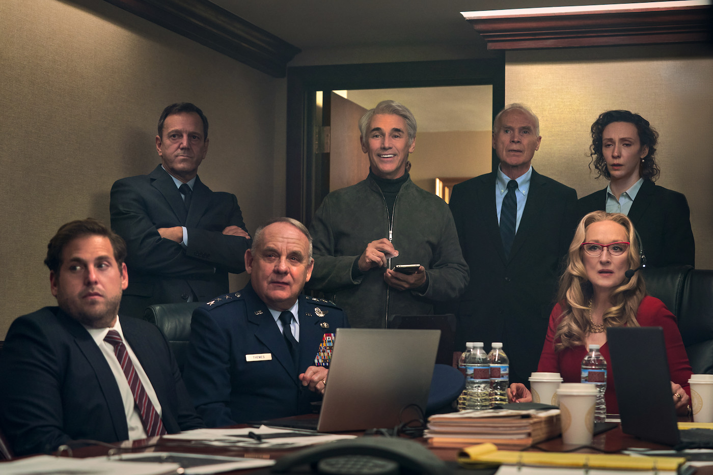 Helping McKay to have his audience digest the juxtaposition of “the terror of the reality” with “the absurd comedy” of misinformation, is a stellar cast of actors who share the filmmaker’s genuine fear of the climate crisis and disdain for humanity’s addiction to misinformation. There’s Meryl Streep (the President), Jonah Hill (her son and chief of staff), Rob Morgan, Cate Blanchett and Tyler Perry (as vacuous talk show hosts), Timothée Chalamet, Chris Evans, Mark Rylance (a greedy tech billionaire), Melanie Lynsky, Himesh Patel, and an incredible musical duo with Ariana Grande and Kid Cudi.
